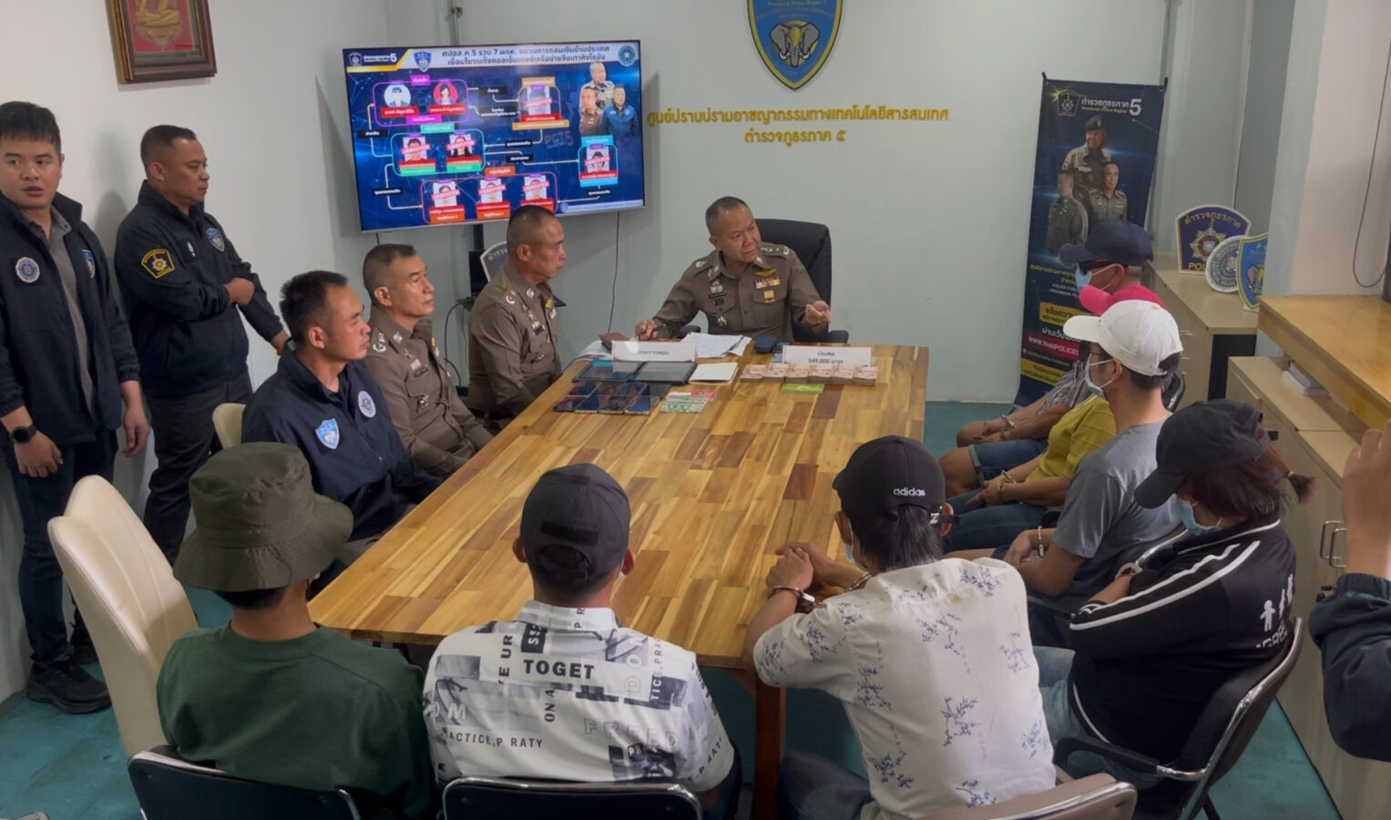 Police from Provincial Police Region 5 have arrested seven suspects involved in an international money withdrawal operation linked to a Chinese call center gang. A total of 549,000 baht in cash was seized.