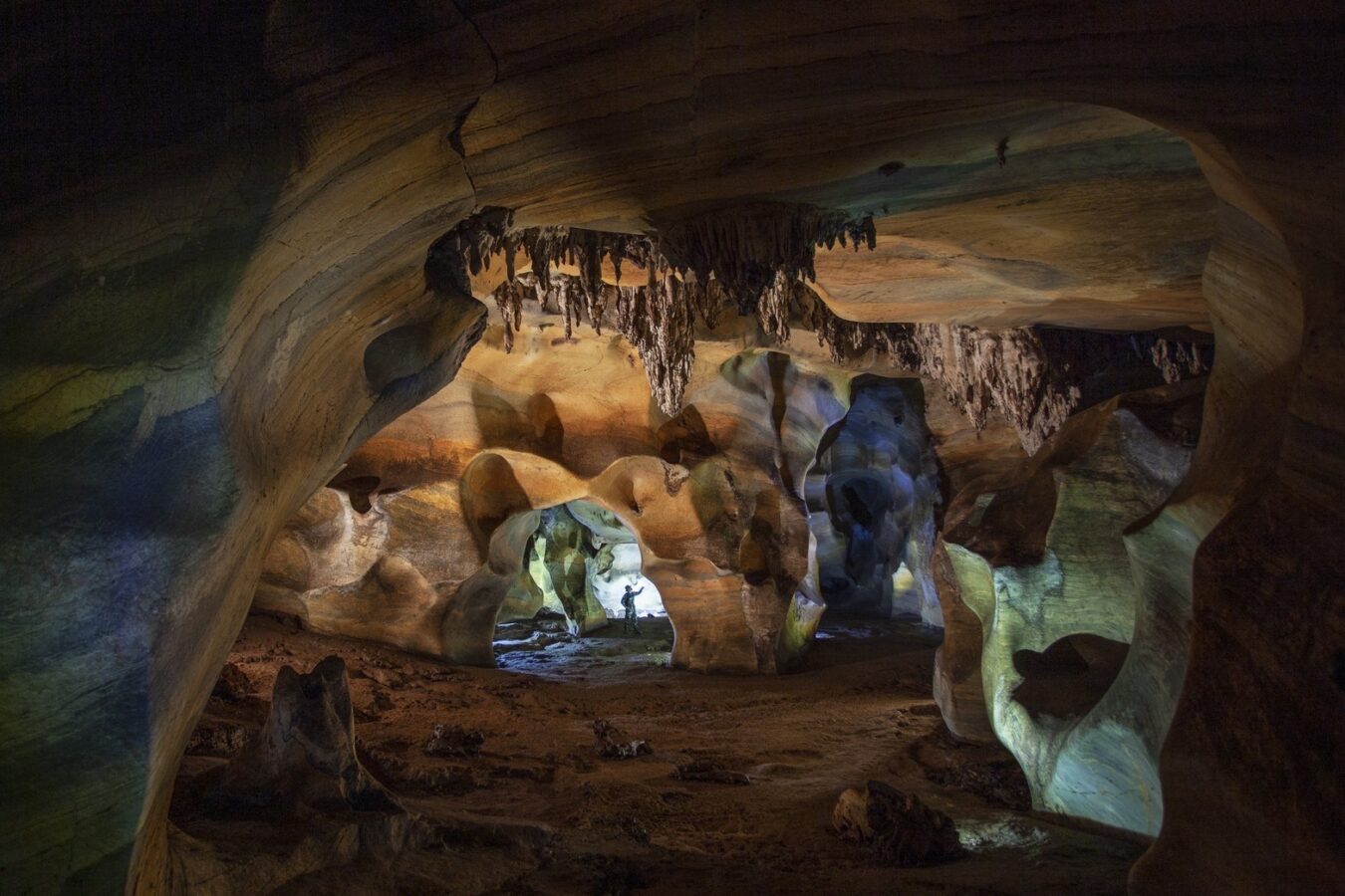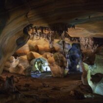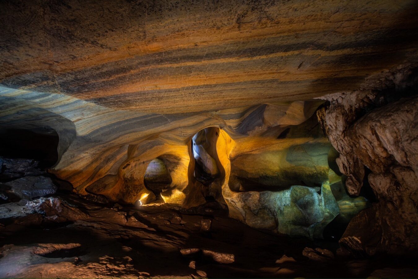 The limestone cave sits about 620 metres above sea level and extends roughly 144 metres inside. Its walls are distinguished by grey and white bands streaked with yellow, while the main chambers feature dramatic stalactites and stalagmites formed over more than a million years. The cave consists of four main chambers and is a dry, semi-active cave suited to nature lovers seeking a peaceful adventure.