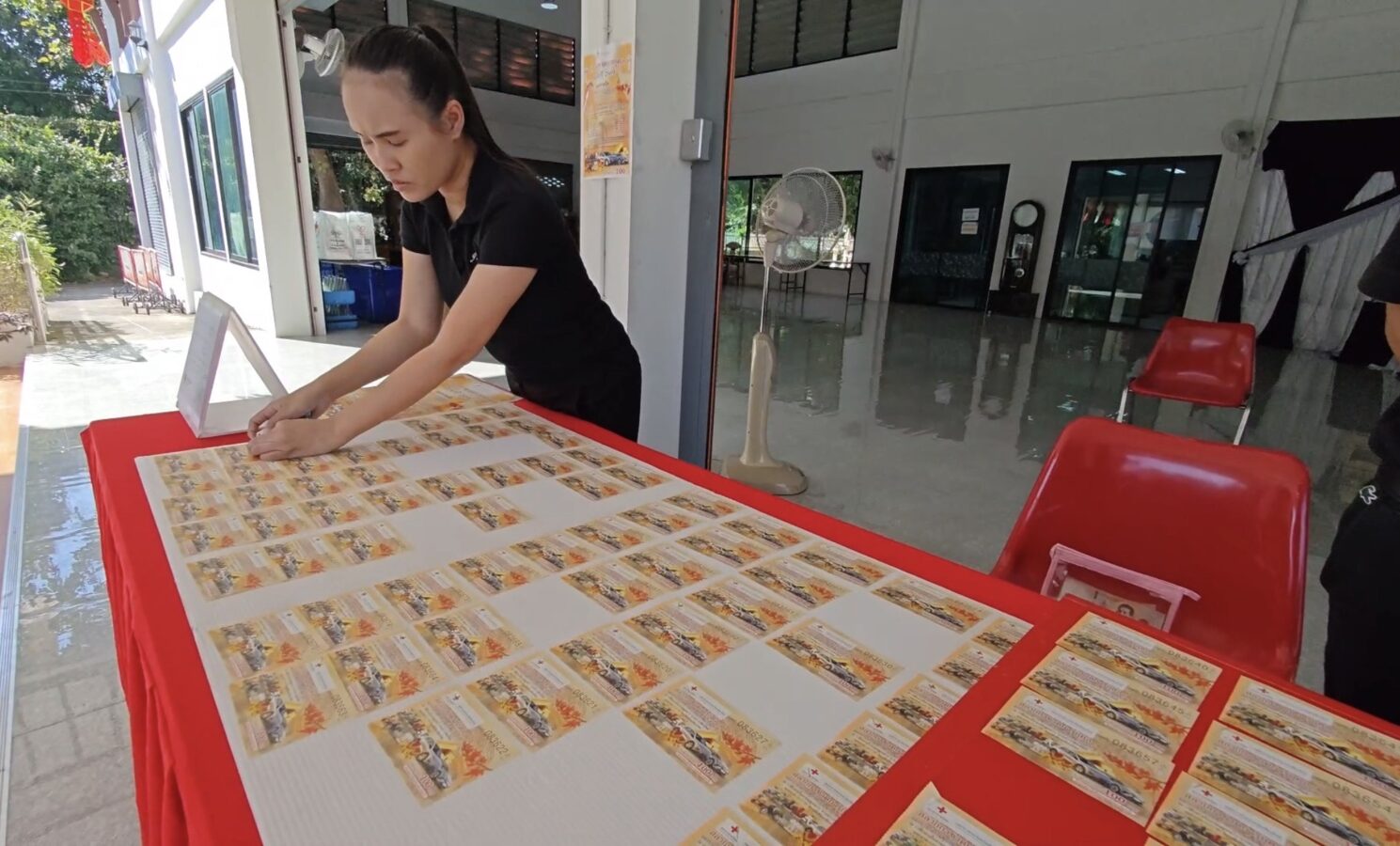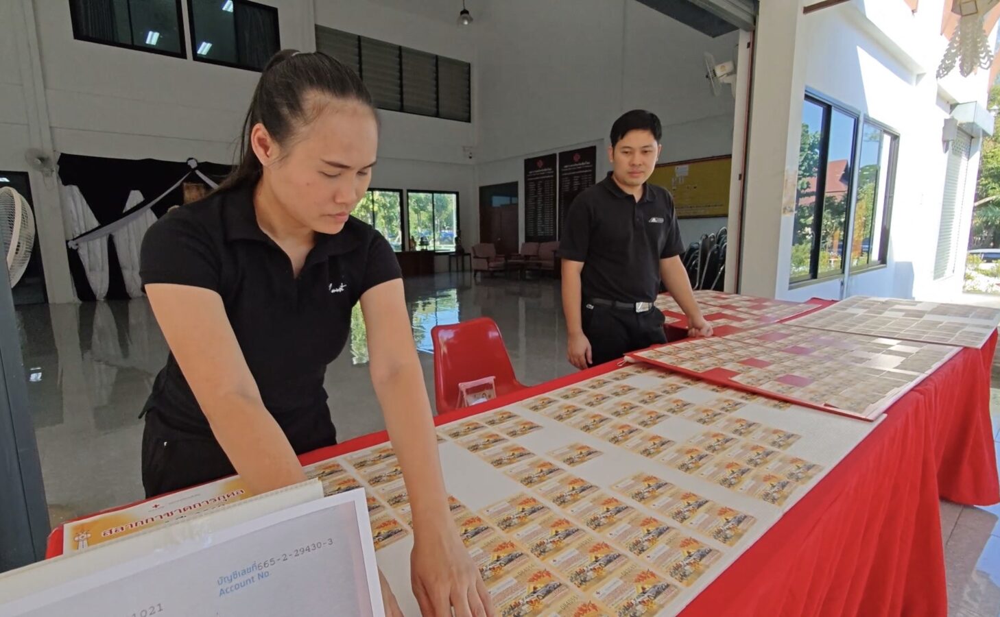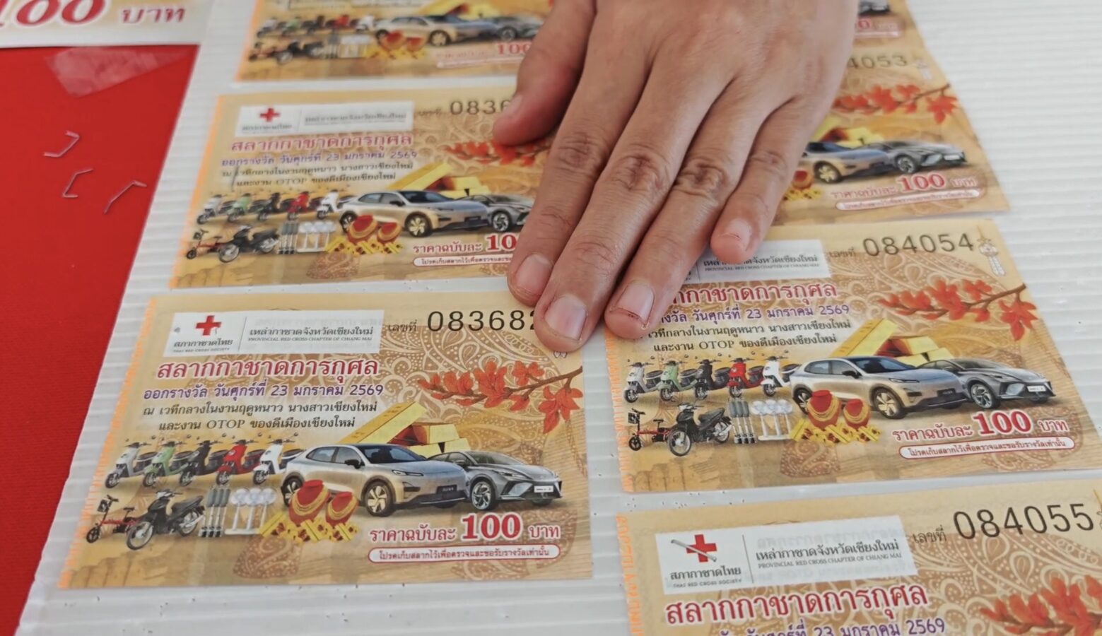 The Chiang Mai Red Cross Society has printed 200,000 charity lottery tickets, priced at 100 baht each, distributed to all 25 district offices and sold online. Today marked the first day of on-site sales at the provincial Red Cross office, drawing large crowds. Of the 7,000 booklets available on site, only 1,074 remain after a single day. A further 3,000 booklets allocated for online agents are expected to sell out within days, as in previous years.