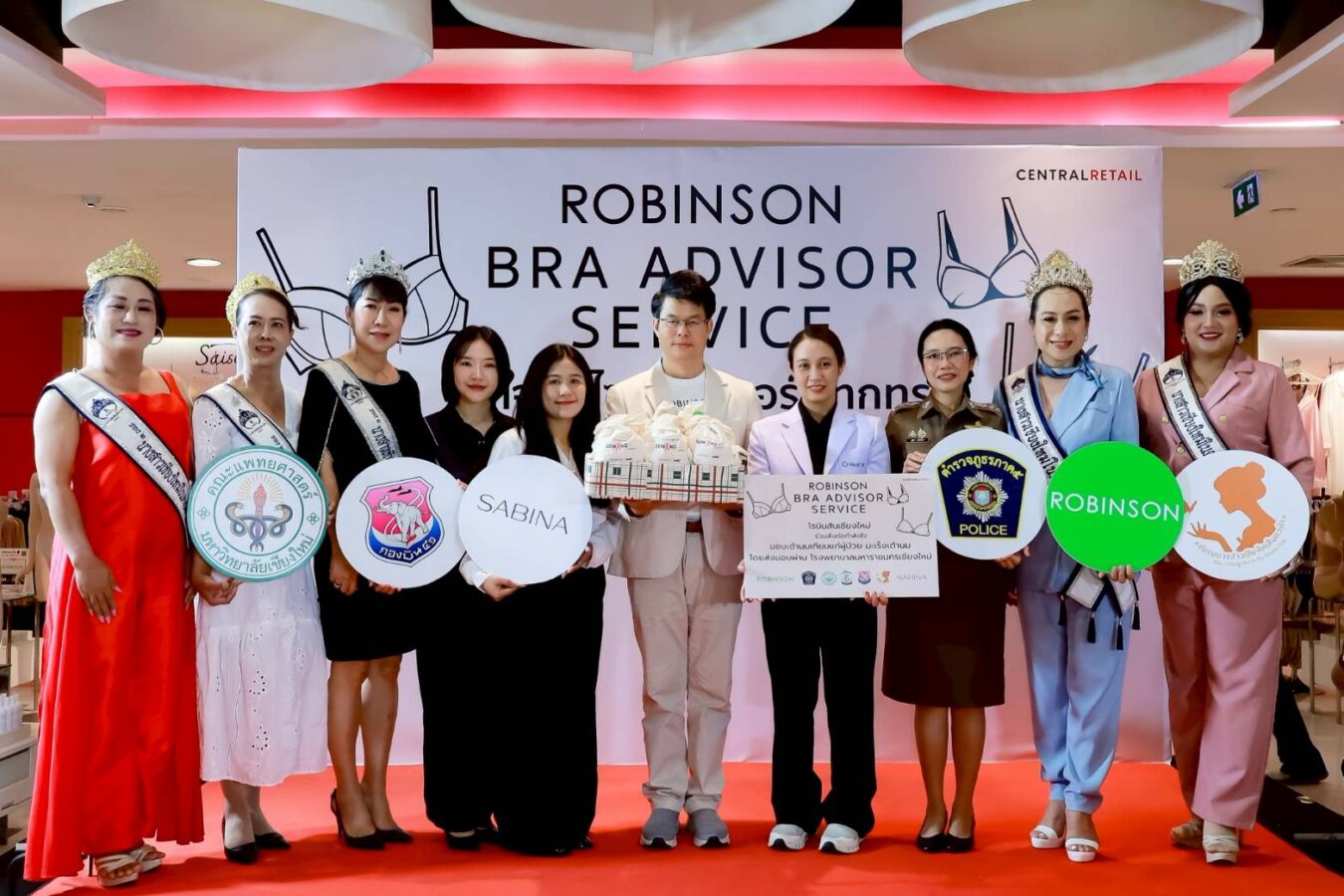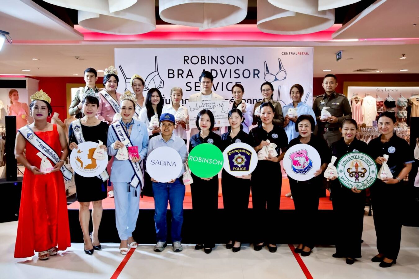 Robinson Chiang Mai, in collaboration with the Provincial Police Region 5, Maharaj Nakorn Chiang Mai Hospital, Wing 41, and the Chiang Mai Miss Beauty Club, recently held the “ROBINSON BRA ADVISOR SERVICE: Sewing Cup Sewing Heart – United Against Breast Cancer” campaign, in partnership with Sabina.