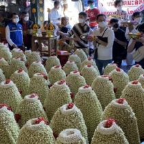 Local villagers were stunned today when truckloads of garlands began arriving at Wat Doi Kham Temple from early morning til around noon.