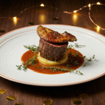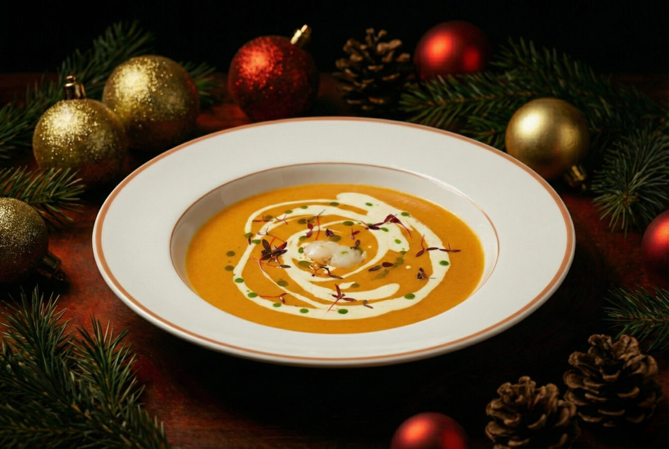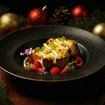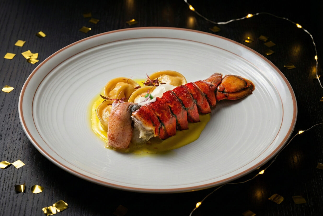 The festivities begin on 24 December 2025 with the Christmas Eve Set Dinner at Favola (Michelin Guide Selected Italian restaurant 2022-2025), available from 18:00 – 22:00 hrs. Priced at THB 1,990 net per person, with an optional wine pairing at THB 1,500 net per person, this elegant five-course experience features festive highlights such as San Daniele ham with parmesan espuma, rich lobster bisque with cognac cream, sweet potato gnocchi with gorgonzola, premium choices of roasted lamb rack, slow-braised beef cheek, or grilled tiger prawns, and a classic panettone dessert to complete the evening.