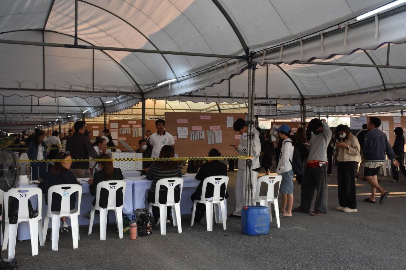 The Chiang Mai Election Commission deployed Territorial Defence volunteers and student volunteers to assist voters with checking registration details and locating polling stations, helping ensure an orderly and efficient process. After voting commenced at 8am, voters steadily cast their ballots without incident. Most reported no difficulty understanding the process, despite this year’s election being held alongside a national referendum.