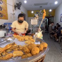 If you have never tried patongko, visit most markets in Thailand from dusk til dawn and you will find a street stall selling them. You can dip them into pandan custard or condense milk and wash it down with sweet hot soy milk…delicious.