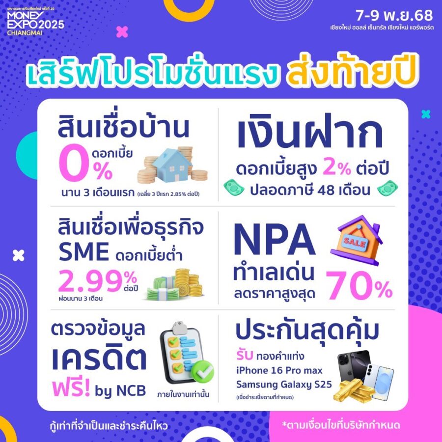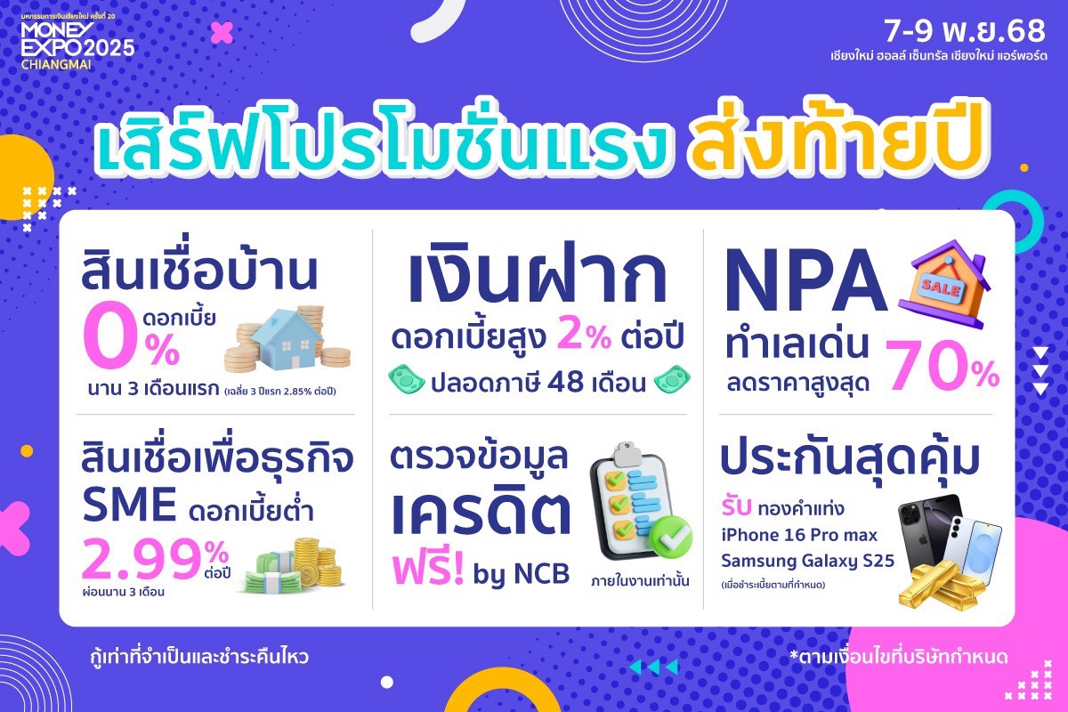 The 20th Money Expo Chiang Mai 2025 officially opened today, bringing together leading banks, non-bank financial institutions, securities firms, asset management companies, and insurance providers to offer special year-end promotions for residents of Chiang Mai and nearby provinces. The event takes place from 7–9 November 2025 at Chiang Mai Hall, Central Chiang Mai Airport.
