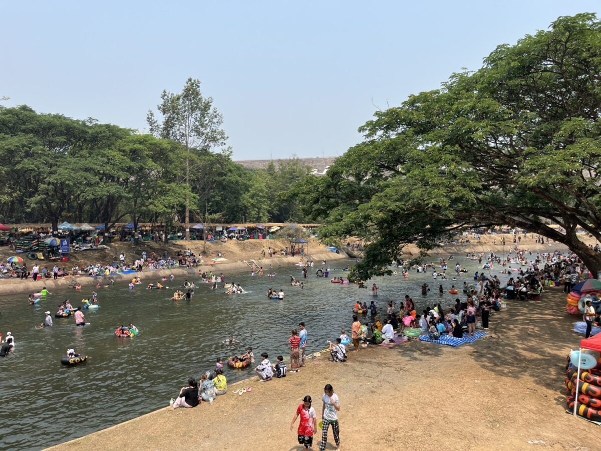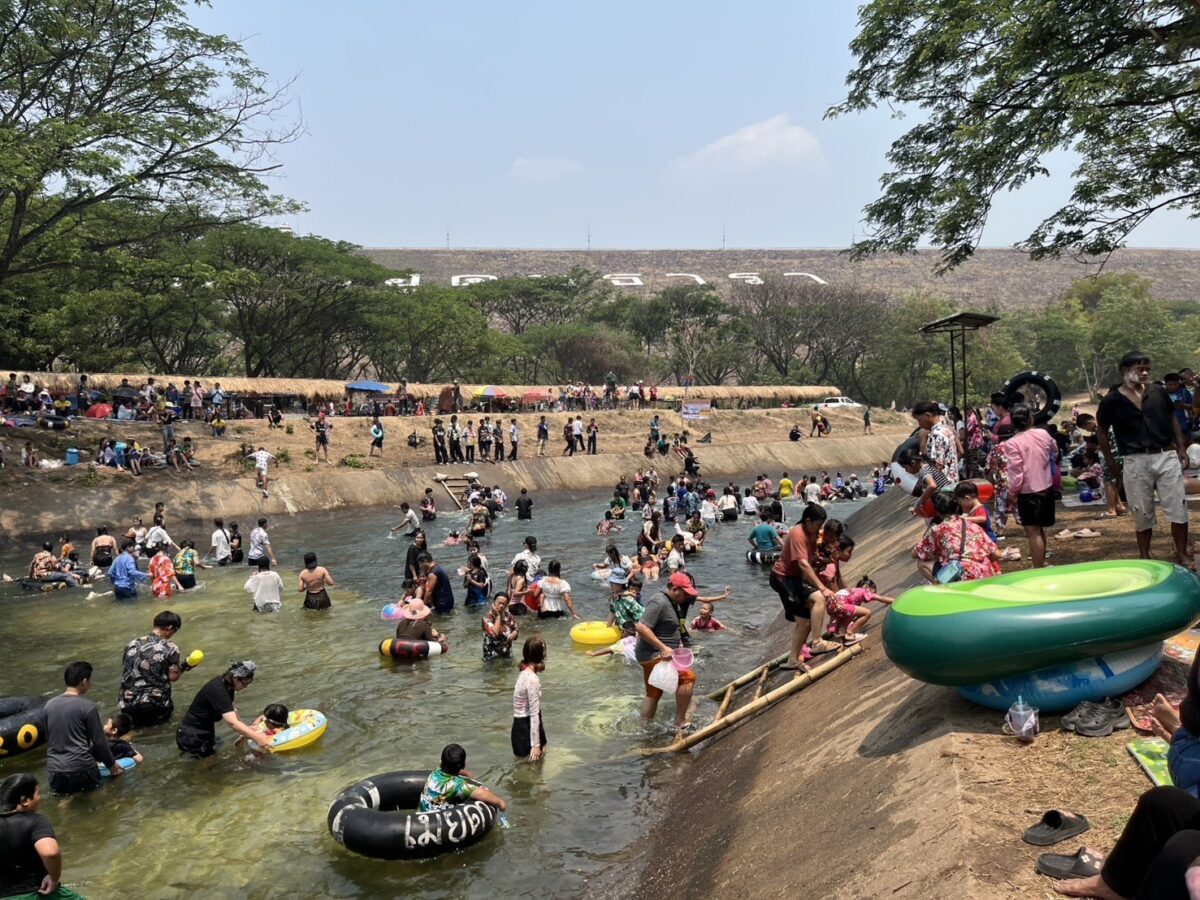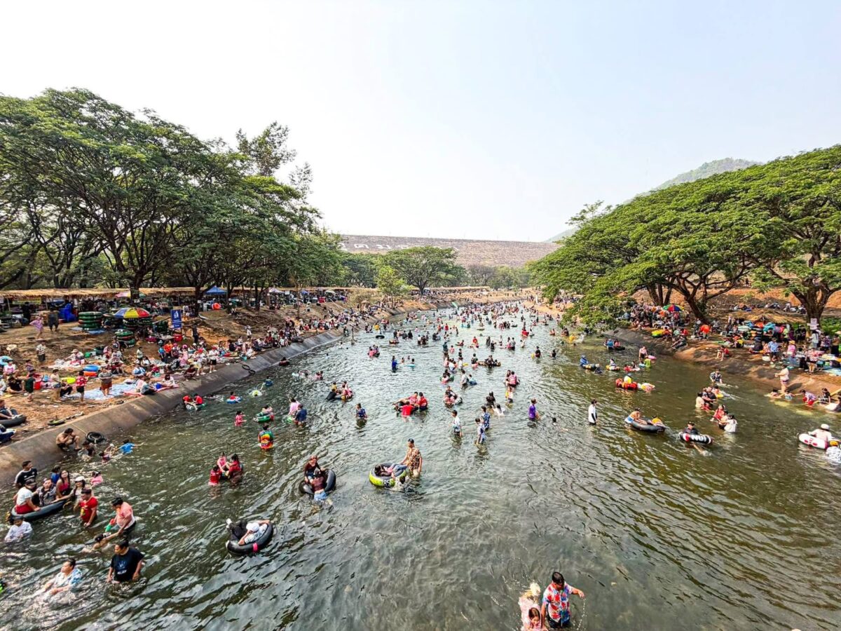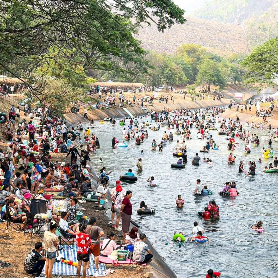 With temperatures soaring, thousands of residents and tourists descended on the Mae Kuang Dam in Doi Saket over the holidays, turning the popular water release point into one of the season’s busiest Songkran spots. Families and groups of friends gathered to picnic and splash in the flowing water, making the most of the long holiday weekend.