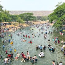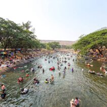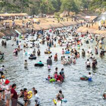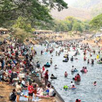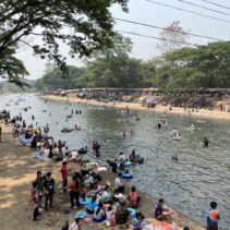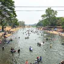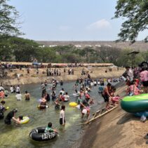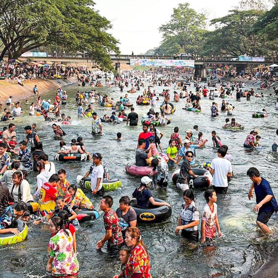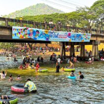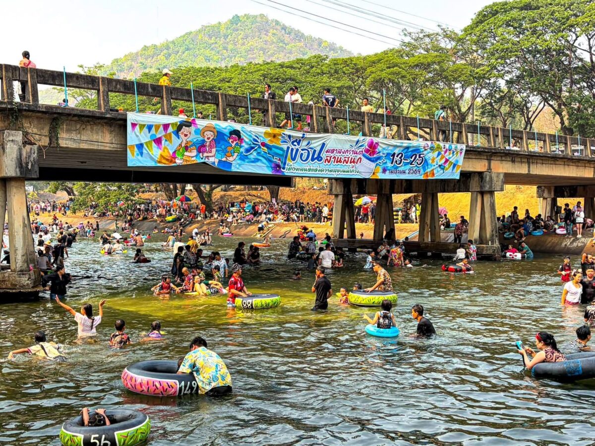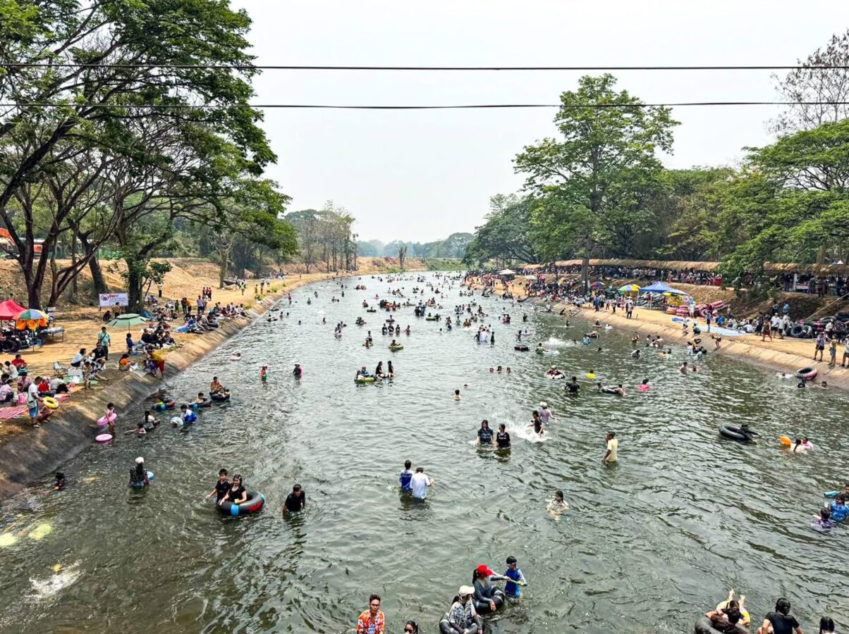 With temperatures soaring, thousands of residents and tourists descended on the Mae Kuang Dam in Doi Saket over the holidays, turning the popular water release point into one of the season’s busiest Songkran spots. Families and groups of friends gathered to picnic and splash in the flowing water, making the most of the long holiday weekend.