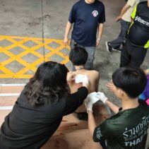 At midnight on September 16, 2025, three teenagers, approximately 18 to 20 years old, were found injured on San Kamphaeng Road. The first was a teenage girl who had a knife wound on her left arm. The second, a teenage boy, had a cut on his finger. The third, also a teenage boy, was injured in the middle of his back. Rescue workers provided first aid at the scene and rushed them to the hospital.