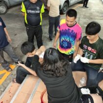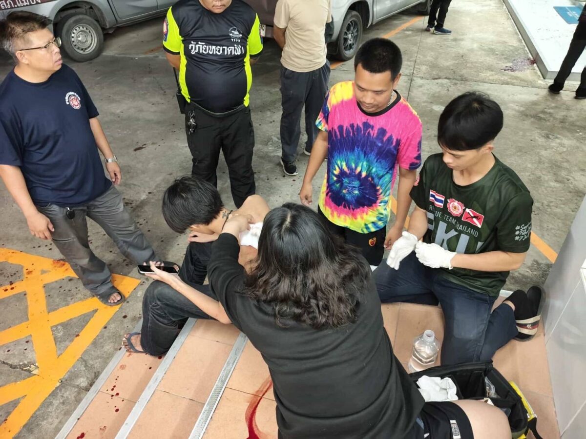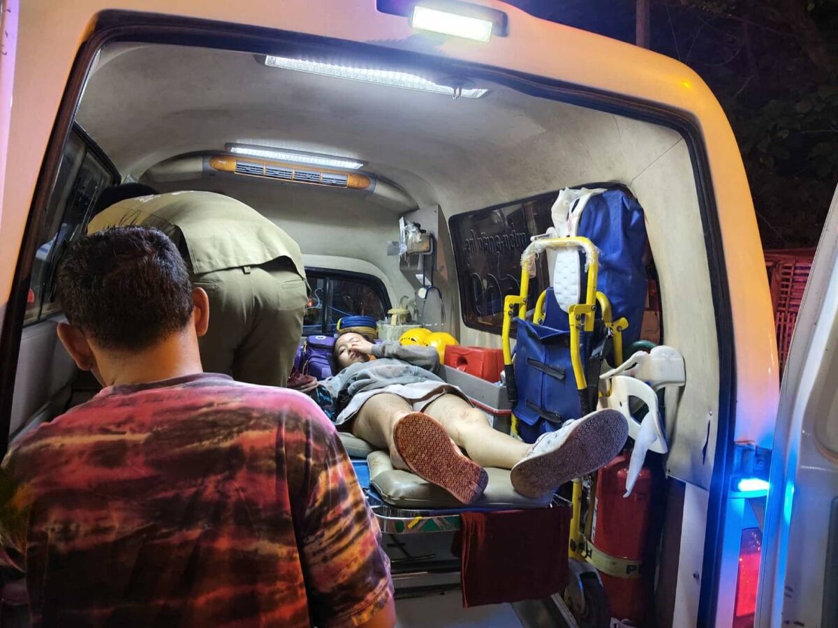 At midnight on September 16, 2025, three teenagers, approximately 18 to 20 years old, were found injured on San Kamphaeng Road. The first was a teenage girl who had a knife wound on her left arm. The second, a teenage boy, had a cut on his finger. The third, also a teenage boy, was injured in the middle of his back. Rescue workers provided first aid at the scene and rushed them to the hospital.