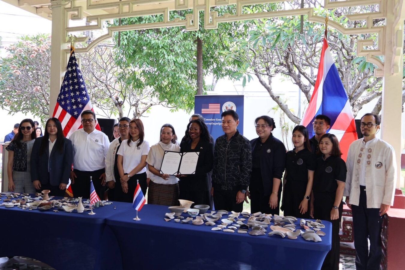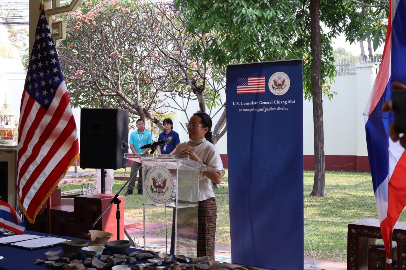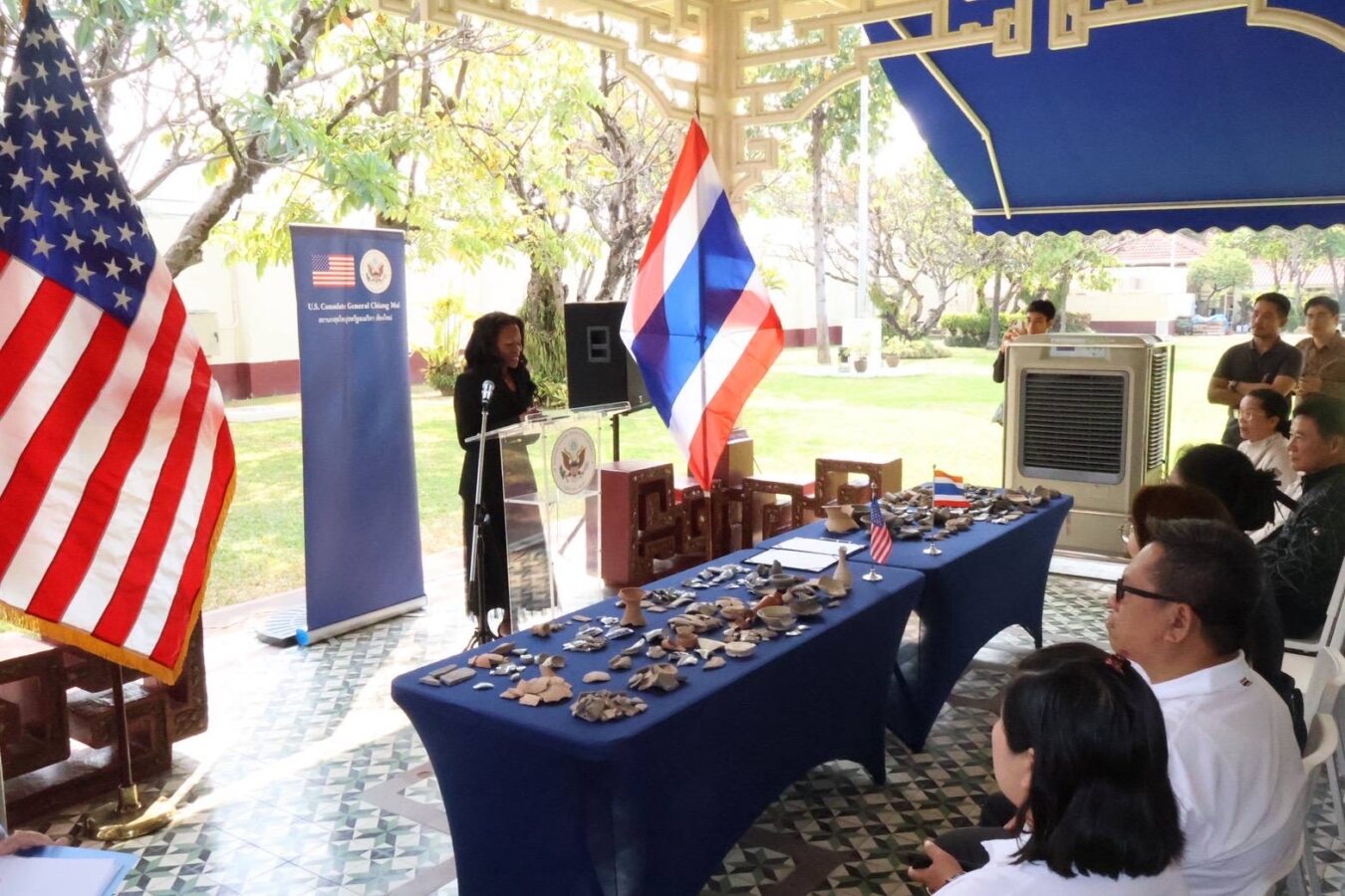 Today, at the former United States Consulate General in Chiang Mai, Kealia Cummins, Consul General of the United States, presided over a ceremony to officially hand over archaeological artefacts to the Chiang Mai National Museum.