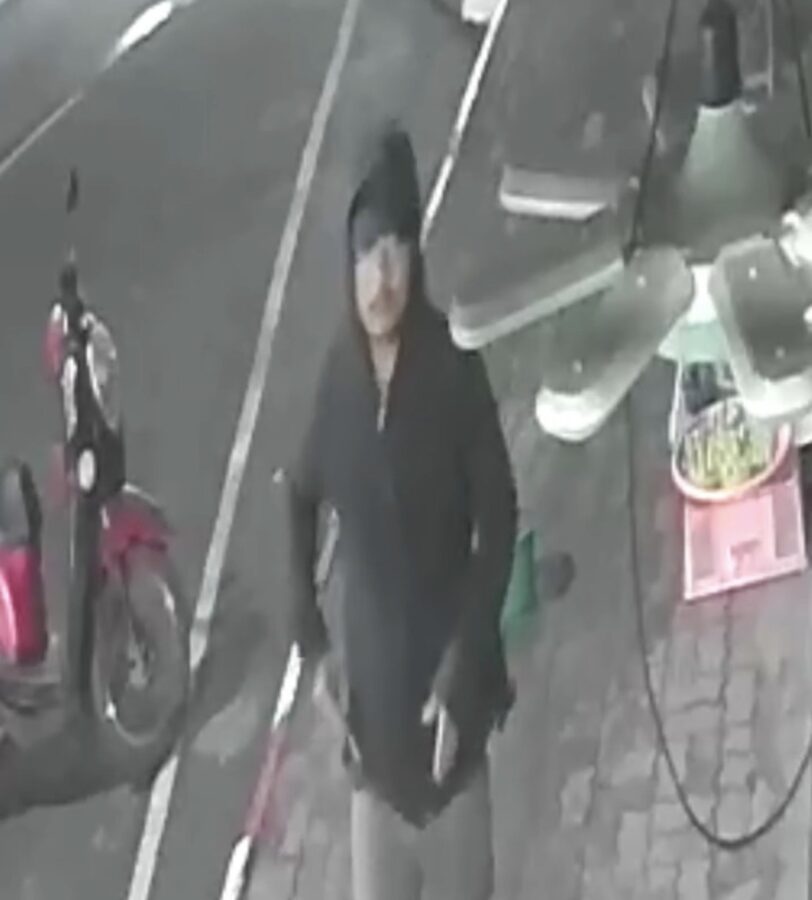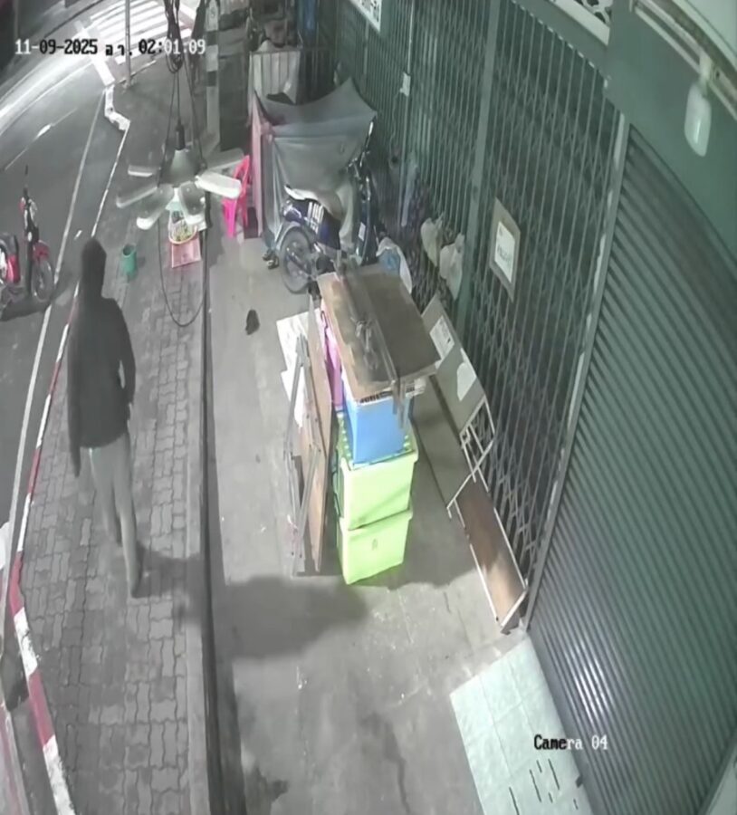 CCTV footage from in front of the clothing store ‘Panipak’ recorded the incident around 2am on 9th November. The video shows a man in his 30s wearing a black hoodie walking back and forth on the sidewalk, apparently surveying the area. Near the spot, the victim was sleeping under a mosquito net with a bag hanging nearby. After watching for a while, the man approached, checked to see if the sleeper was fully asleep, then quickly pulled out the phone’s charging cable, grabbed the bag, and fled.