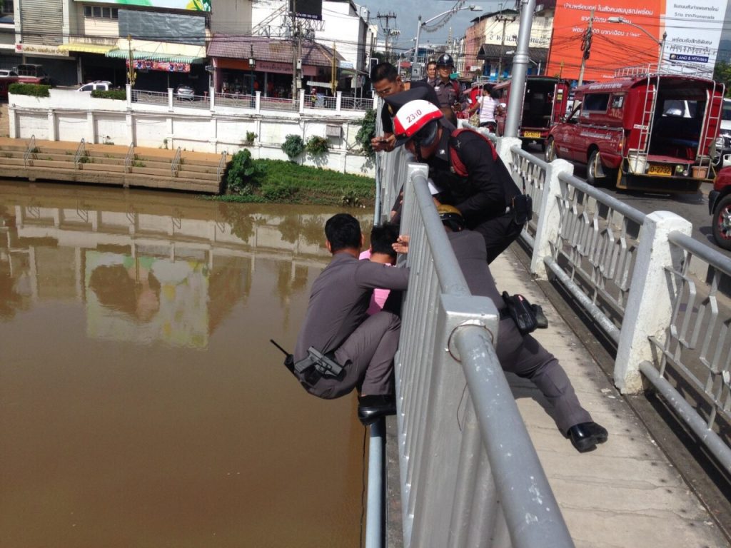 Man Saved From Suicide by Brave Policemen 2 August 2017 A man was spotted trying to jump off Nawarat Bridge Man Saved From Suicide by Brave Policemen