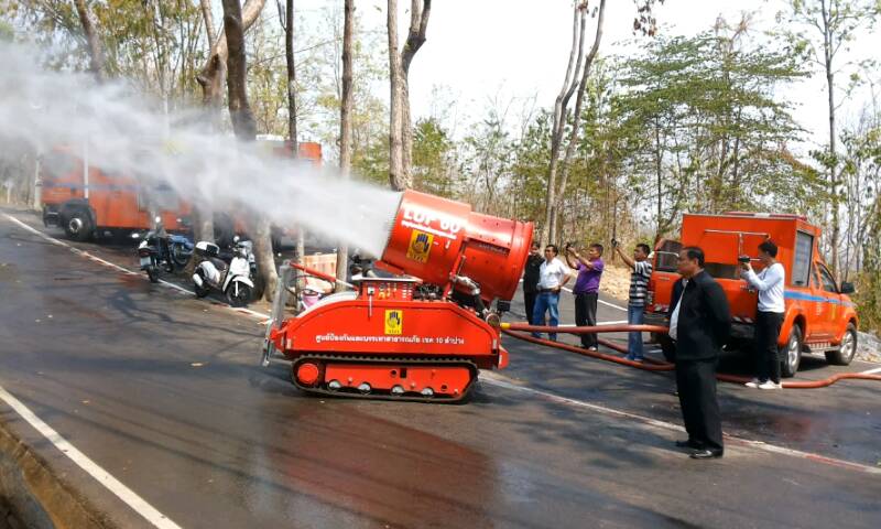 Lampang Disaster Prevention and Mitigation Area 10, however, has spayed water in Chiang Mai Zoo to cool it down for animals, locals, and tourists and to reduce the smog. Animals, especially hippos, have been under great stress and need to cool down in this weather. The water will be sprayed every Sunday until the smog situation improves. Chiang Mai Provincial Public Health informs people to stay in if going out the mask must be used every time.