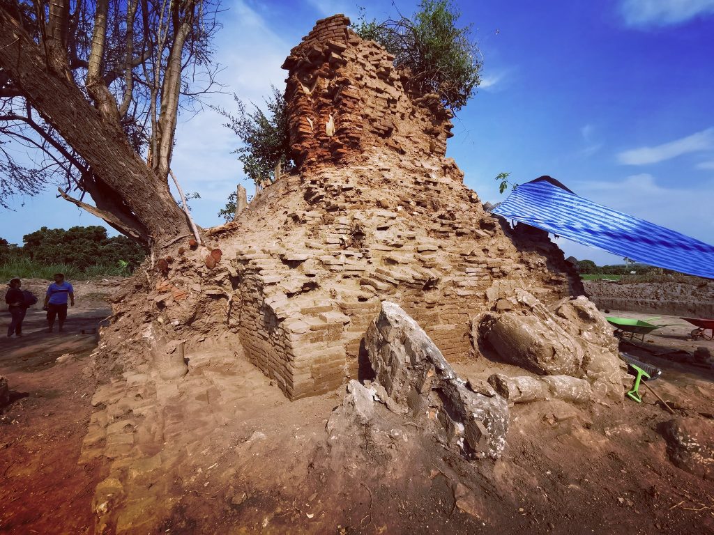 On June 3rd, a Facebook page Archaeology 7 Chiang Mai shared their latest discovery at the locally called Wat Chang Kham, an abandoned temple in Ban Pae, Chom Thong District. The archeological dig started in 2017, at that time there was merely a mound with no obvious sign of a heritage site. This year the team continued the excavating, during which a pagoda was discovered. It is assumed to be a bell pagoda from the founding era of Chiang Mai. An elephant sculpture, a part of the pagoda’s base, was found. The team stated that a pagoda with elephants at the base is an influenced by the Sukhothai era which borrowed it from Sri Langka in the early days. Ceramics were also found at the site which is identified to have been from the 19th or 20th century.