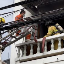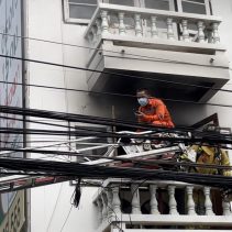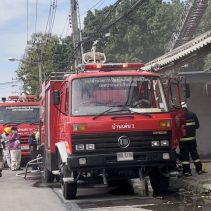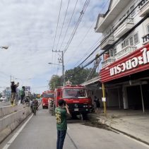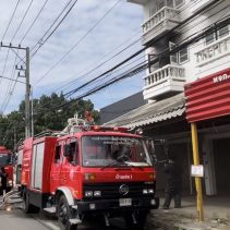 Mae Ping Police say that a three story building on Mahidol Road was engulfed in flames before noon today.