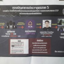 He told police that he would obtained contact information from the gang and then would call people claiming to be an officer from Siam Commercial Bank. The victim would be requested to disclose their OTP code on the grounds of an alleged security protocol. He would the use the victim’s code to register for the SCB EASY application and remotely withdraw the victim’s money.