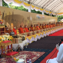 The merit making ceremony had a special emphasis this year in praying for the cessation of the spreading of the virus. A total of 27 monks and only 50 guests were present, as social distancing limited numbers. The event was streamed live on Facebook.
