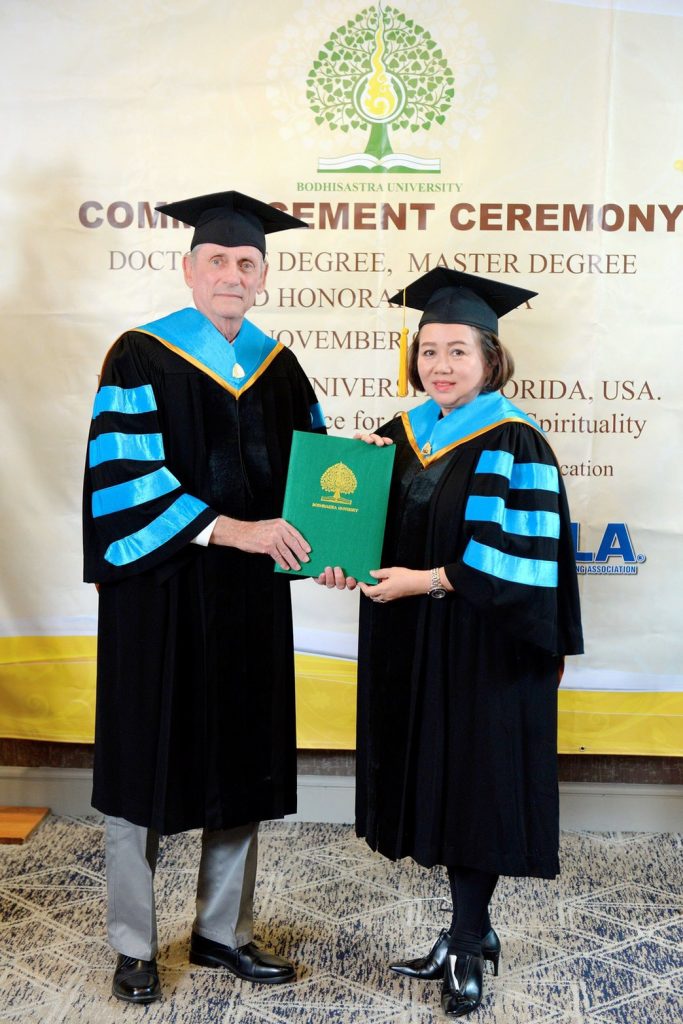 On 10th November 2019, Anida Donavanik, director of Chiang Mai Spa Academy, a consultant for a compete spa business, managing director of Lanna Come Spa and Rada natural spa product, went to receive Ph.D. Degree from Bhodisartra University, USA. She was the first Thai to earn a Ph.D. in the field of Health and Wellness Spa.