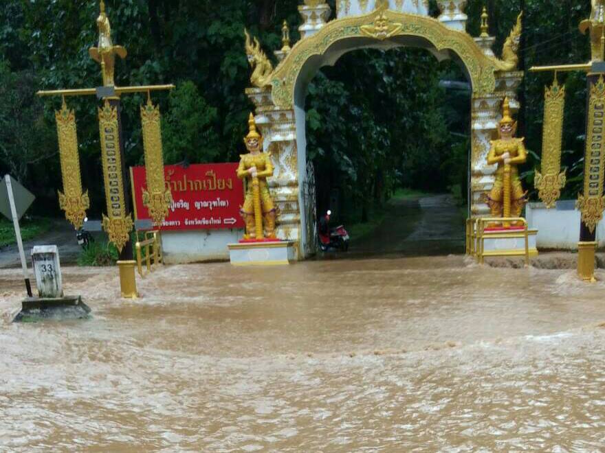 CityNews – Today, 2nd October, at around 8am, a flash flood caused havoc as it gushed down the mountain towards Wat Tham Pak Pieng where Chiang Dao Caves sit.