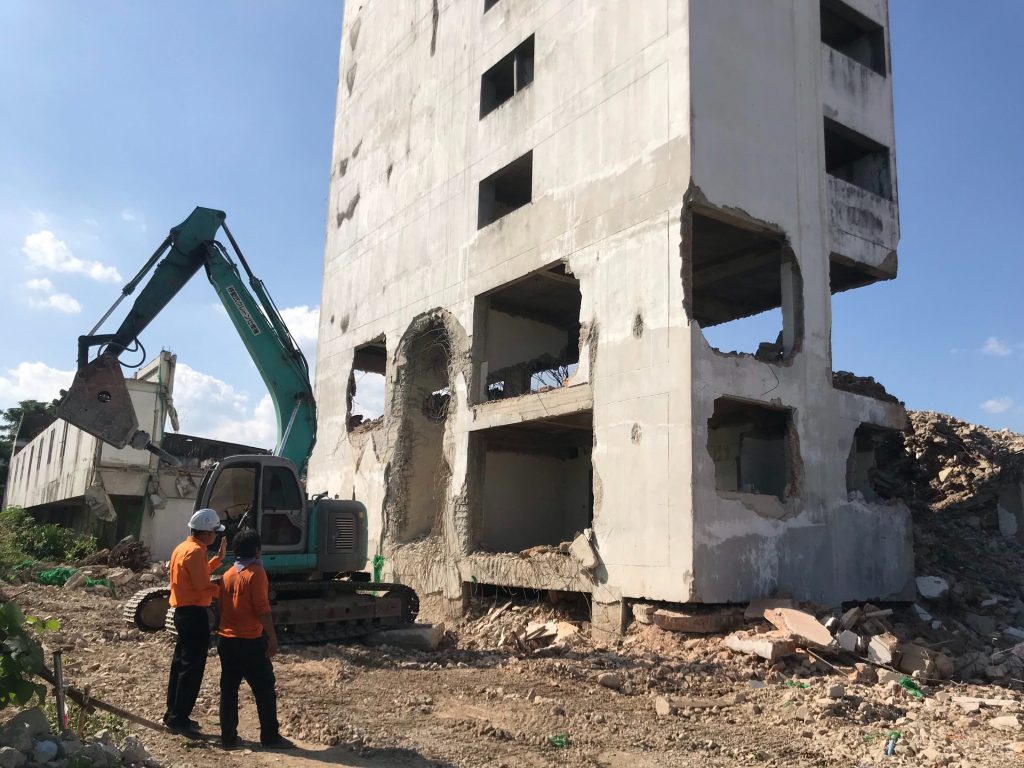 This building was built 40 years ago as Poy Luang Hotel, a luxury hotel at that time, with a revolving restaurant on the top floor, located near Nong Prateep intersection on Chiang Mai – Lampang super highway. It had suffered a business loss and closed down for many decades until Ram Kham Haeng Hospital Co. Ltd. bought this site from Sukhumvit Asset Management (SAM) at the price of 381.79 million baht to build a hospital. Demolition will be completed by the end of this year.