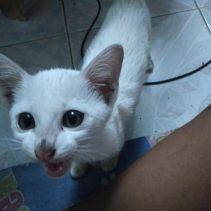 A story of a Grab Bike driver who rescued a kitten from near the Chiang Mai Juvenile and Family Court has gone viral on social media. Patawee Normai, 33, was on his way to deliver food on the night of September 4th when he spotted a ‘white object’ while passing through the under pass. He made a stop and found a kitten hiding in the drain. He failed to call the kitten out from the spot, drove to nearby shop, bought some food, and placed it there for the kitten.