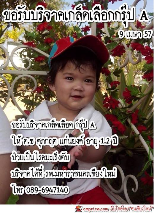 CityNews—April 9th, cmprice.com post a flyer on the CM108 Facebook page about an urgent need for group A blood platelet for a one-year old baby named Supakrit Kanyong.