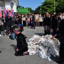 Hmong people gathered in front of a portrait of His Majesty and stool inline to create a heart shape in homage of the late king in the district office’s courtyard. They also conducted a traditional Hmong ceremony for His Majesty’s ascendant to heaven.