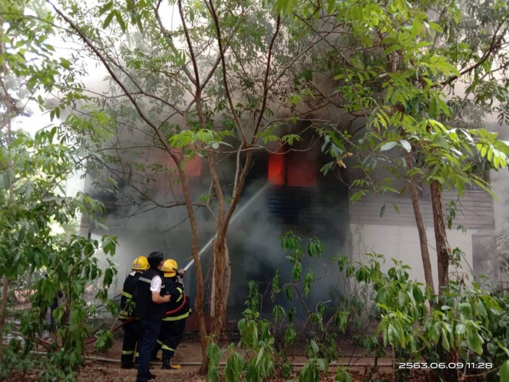 Earlier today an old wooden house next to Prince Royal’s College on Bamrungrad Road went up in flames and eventually burnt down.