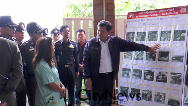At 9:30 a.m. on May 3rd, Pol.Gen. Pongpat PongJarern, Secretary of the Office of Narcotics Control Board (ONCB), led a team of officers to seize assets from Phrao Auto Car in T. Patum, A. Phrao. The owner, Anan Jaiwan (42), who also owns Wieng Phrao Radio FM 102.0 MHz, was arrested last month in Amphur Chai Prakarn with 292,000 yaba pills hidden in a spare tyre of his pickup truck.