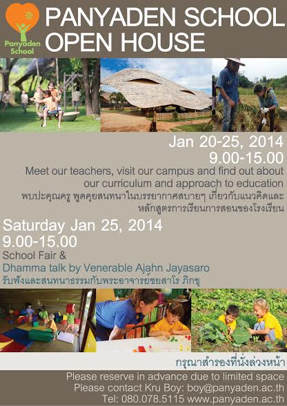 On Saturday there will be a school fair and a talk by Ajarn Jayasaro. Spaces are limited so guests are encouraged to make a reservation, either by emailing Kru Boy at boy@panyaden.ac.th or calling 080-078-5115 or 053-426-618.