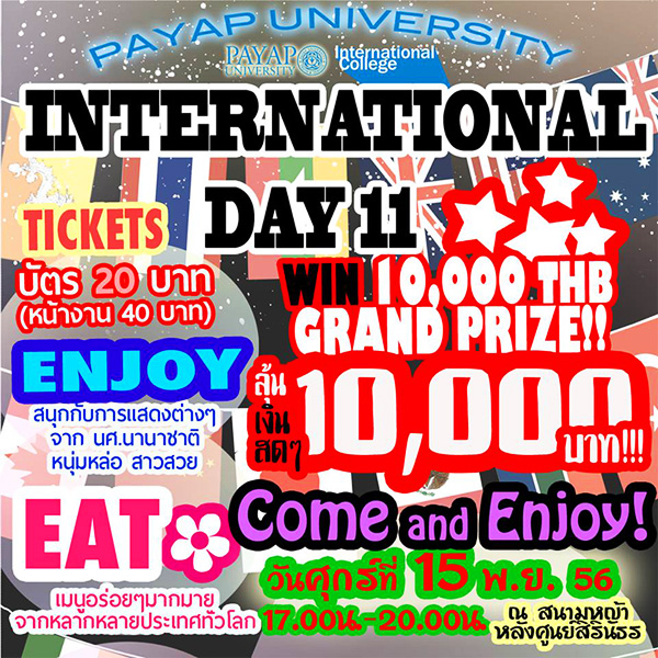 CityNews – Payap University’s International College is happy to announce its eleventh annual International Day festivities on 15th November, 2013 starting at 5 pm.