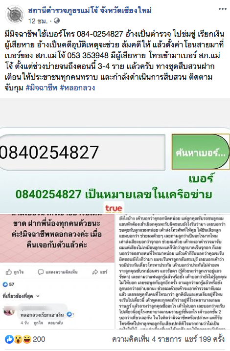 Maejo Police revealed that there has been at least three victims who received similar calls from the same number.