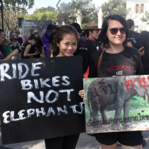 Led by the president of Save the Elephant Foundation, Saengduean Chailert, the group met at Three Kings Monument before walking around the city.