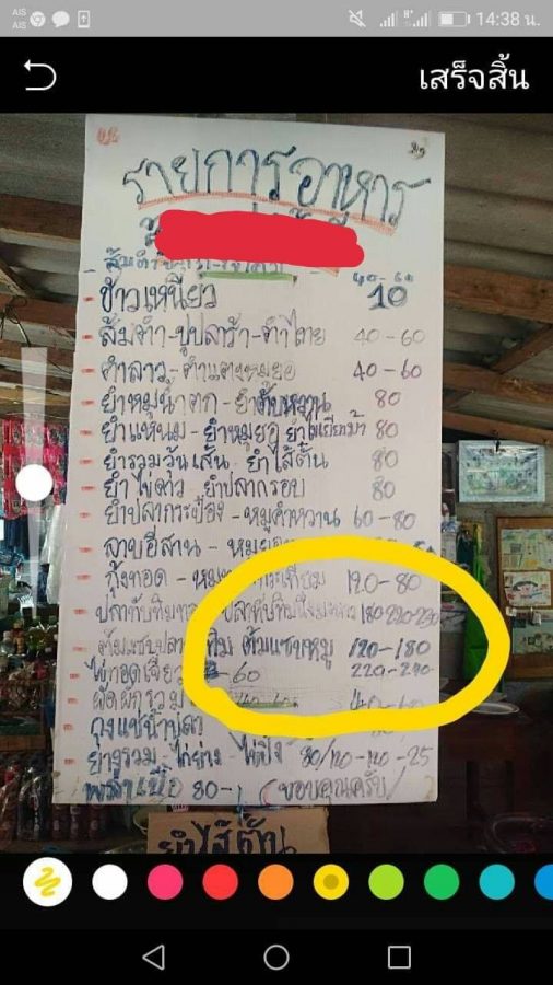 On March 3rd, military, forest officers and local authorities visited Pattaya Muang Hod, a tourism destination that has been recently opened after a renovation, after there were complaints over pricing. There were several shops that were found guilty. One of the alleged shops is revealed to have charged over 120 baht for a spicy pork soup. The authorities gave a warning to these shops and also stressed that customers be told prices of the meal beforehand, that the menu must have clear pricing and that alcohol is not allowed to be sold to those under 18 years old. According to the report, there will be a further prosecution if the shops do not comply to the warnings.