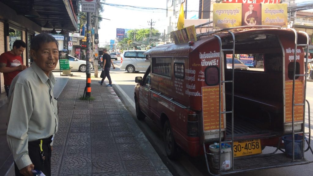 Wattana ‘Noi’ Janatpoon, 65, lives in San Pa Tong. He has driven a songtaew for over 30 years. But ten years ago, when he survives a terminal illness, Uncle Noi began providing free service for monks, people with disabilities, the elderly and students. Uncle Noi says that, while battling his illness, he prayed and promised to the sacred Doi Suthep and Kruba Srivichai that, if he recovered, he would do good deeds for Chiang Mai and in the name of HM the late King Rama IX.