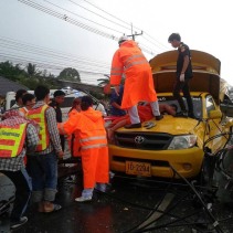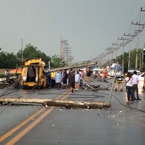 The songthaew was driving from Chiang Mai heading to Chiang Rai’s Wiang Pa Pao district when it was hit by the pylon.