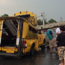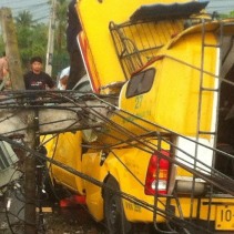 CityNews – A songthaew was crushed by a concrete electricity pole in Chiang Rai after strong storm winds hit the northern city.