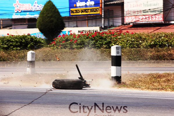 The Superhighway was closed from Mae Jo intersection while the explosive was being cleared. Police Colonel Montop Sangjumnong, Chiang Mai Police Deputy Commander and a Chiang Mai police unit rushed to the scene. After the EOD unit inspection, the explosive in question turned out to be a green beer can and a bundle of electrical wires wrapped in black chord. They brought bystanders to a safe distance before covering the object with car tyre and hosed it with high pressure water. They then remote detonated the object at 1:15pm. No explosive components or fuse were found. Police speculate that it was a work of simple menace.