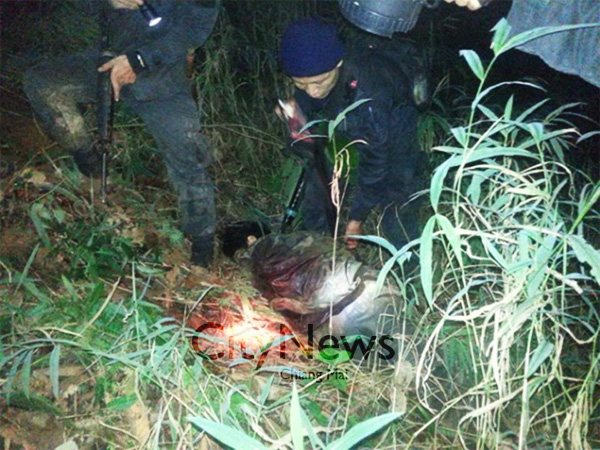 Pha Muang Soldiers reported that they attempted to stop 3-6 men carrying sacks and arms (unknown type) through a security check in the darkness. A gunfight ensued with the men and the soldiers.