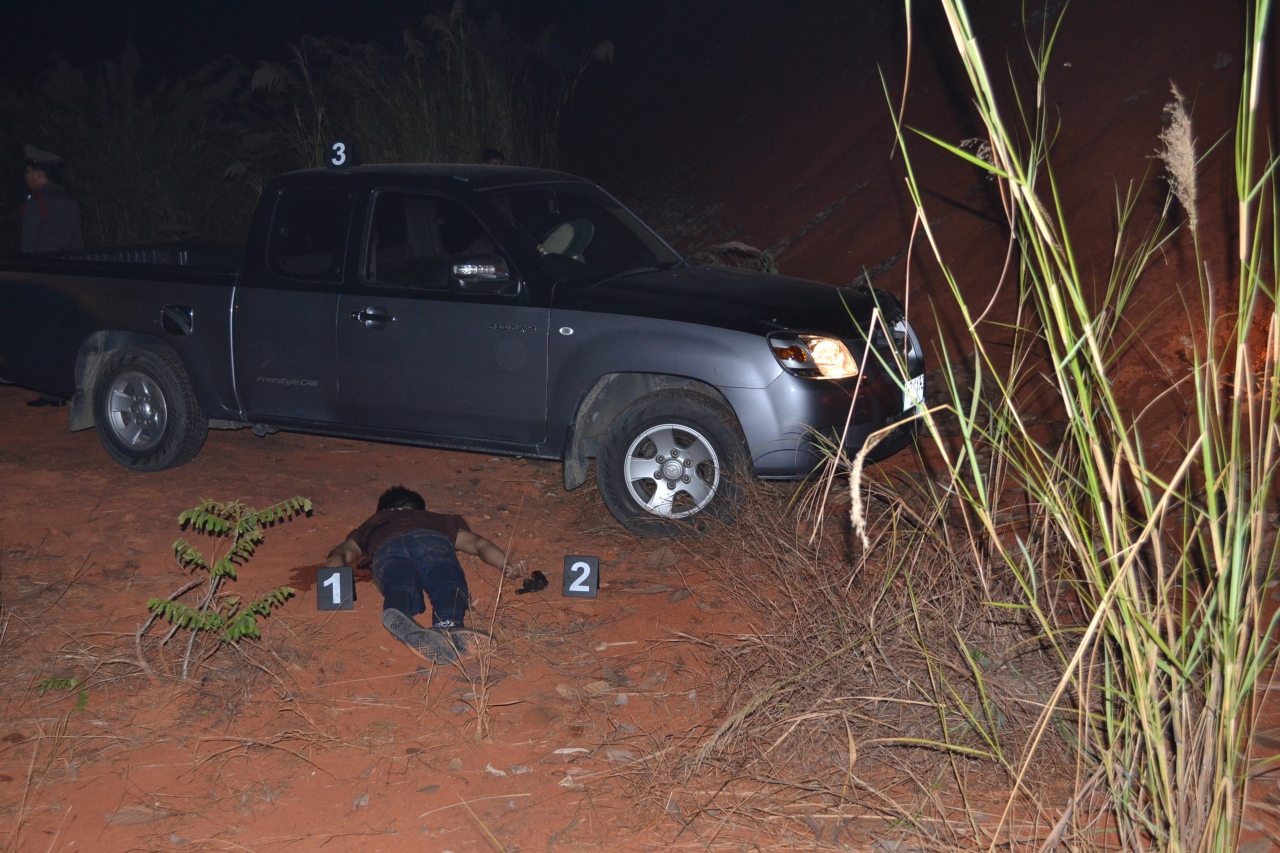 The officers found two pistols and a grenade near the dead bodies. They were identified as Nimon Wongchaichareon, 32, and Inkaew Duengsang, 45. Both worked as assistants to the Malika sub-district village chief in Amphur Mae Aye.