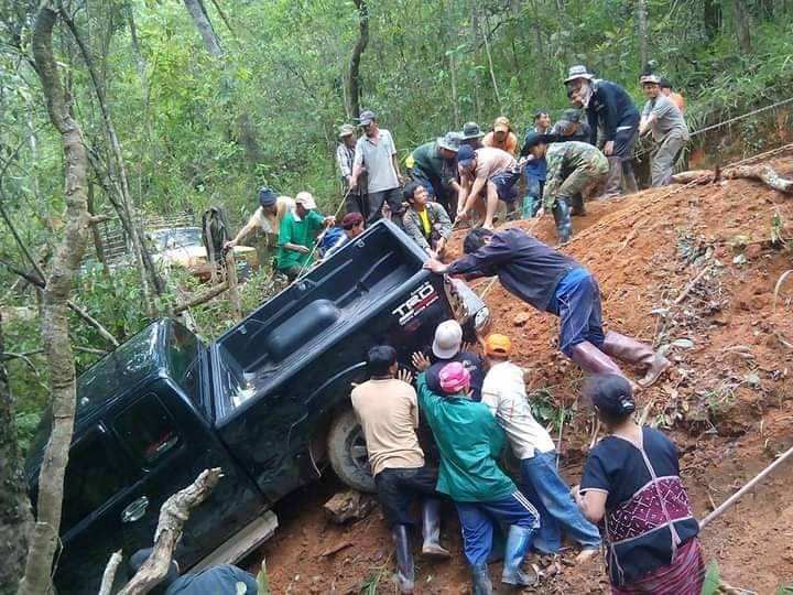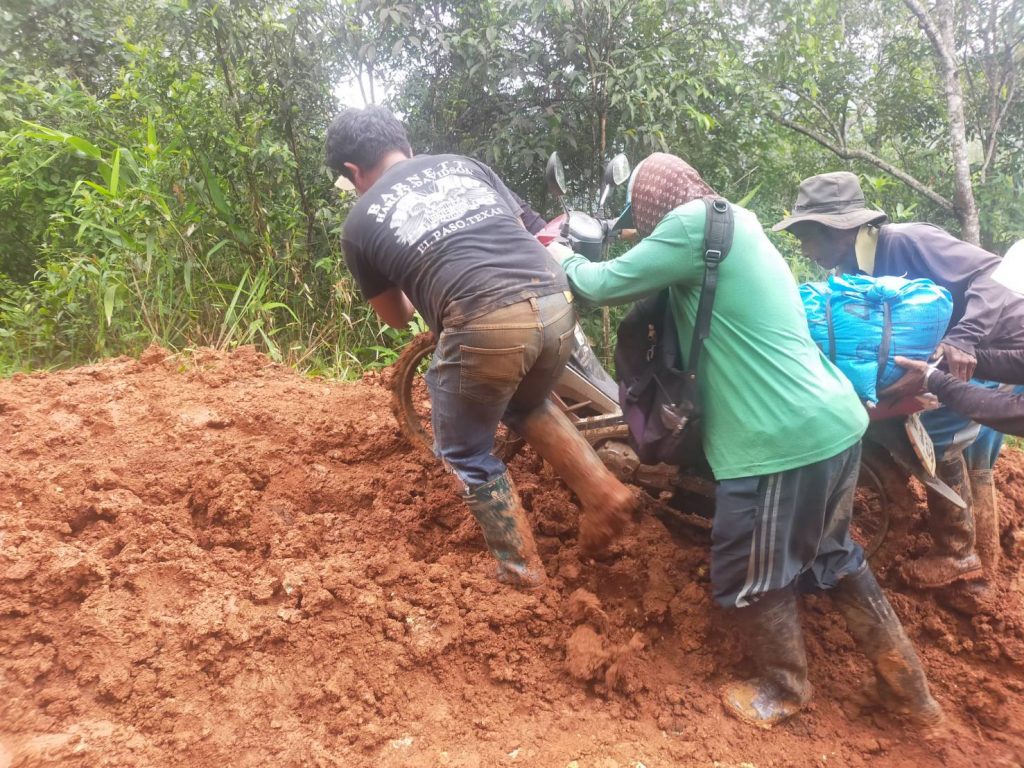 According to a local representative from the village, the road is very hard to navigate, especially during the rainy season when mudslides and deep holes in the road often measuring over a metre deep can sometimes send vehicles careening off the side of the road into a gully. At times it requires many supporting vehicles to travel together to keep pulling one another out of trouble, often taking hours to tackle a short stretch of the road.