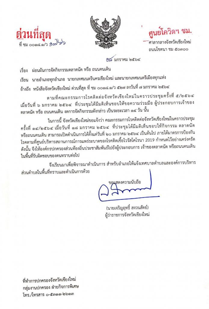 Following a meeting held yesterday by the committee overseeing the current pandemic in Chiang Mai, it was agreed that walking streets, weekend and pop-up markets will be able to reopen as of tomorrow, January 20th.