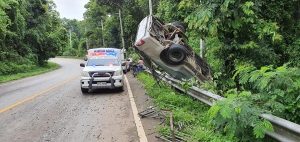 Following heavy rainfall over the past many days, many areas in Mae On sub district have suffered from severe floods. Flash floods have also caused great damage, falling many electricity poles, leading to no electricity in many areas. Chiang Mai Disaster Prevention and Mitigation Office’s director, Second Lieutenant Nattapong Thiwikran said that a monsoon trough came through the north this