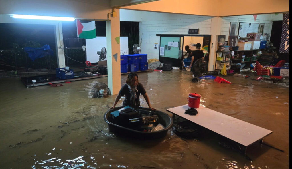 Two nights ago following a deluge of rain between 8pm-9pm, saw areas of Chiang Mai University waking up to a flash flood. The Strategy Department building, numerous student parking areas as well as areas in Chang Khian were also affected as water levels rose up by one and a half metres within 20 minutes. By dawn water levels had completely receded.
