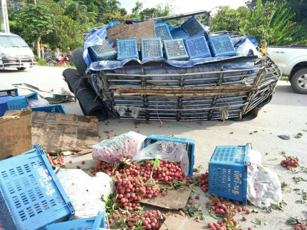 Lychee-carrying Truck Involved in High Speed Crash 2 July 2018 High speed crash wrecked a lychee-carrying truck. Lychee-carrying Truck Involved in High Speed Crash