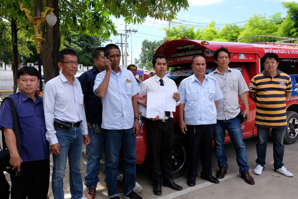 Songtaew Drivers Surround Grab Car, Demand Laws Enforced 2 July 2018 A gang of songtaew drivers surrounded a Grab Car driver Songtaew Drivers Surround Grab Car, Demand Laws Enforced