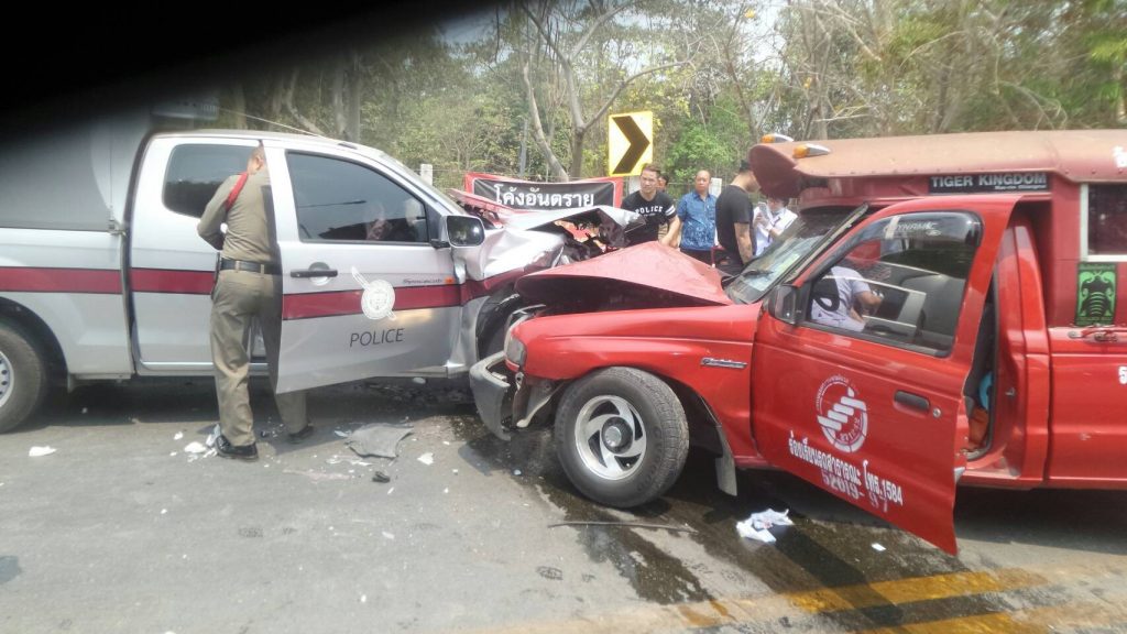Songtaew Crashes with Police Car in Chang Phueak 23 March 2018 A Songtaew and a Police patrol car were involved in a Songtaew Crashes with Police Car in Chang Phueak