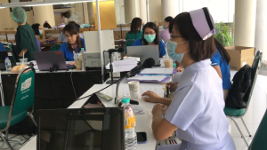 A steady stream of necessities and even comfort goods have been arriving at the convention centre field hospital, as people across Chiang Mai send donations to help those quarantined. Both private and public sectors have been donating goods and consumables in large numbers, some by themselves, but mostly via delivery services. In a clever use of the delivery services, people may stay at home and