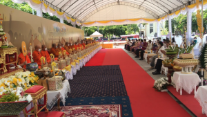 There were long lines of people at the front of the Provincial Administration Organisation office earlier today with hundreds of people queuing up to receive donated produce. The fruits and vegetables being given away to those in need were all donated by Omkoi farmers who travelled to Chiang Mai to bring 10 tonnes of pumpkin, 10 tonnes of tomatoes, 7-10 tonnes of bell peppers and 4-5 tonnes of
