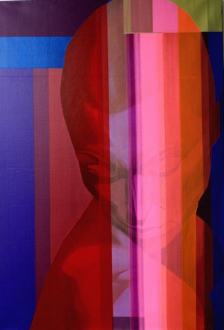 The acrylic on canvas works have a unique composition to them from different angles, different components of the painting can be viewed simultaneously by the viewer. In effect, a change in perspective takes place in the eye of the beholder – exposing the results of the artist’s layered technique. His use of metallic colors and the layers on his figurative models carves out a phenomenal, harmonious landscape.